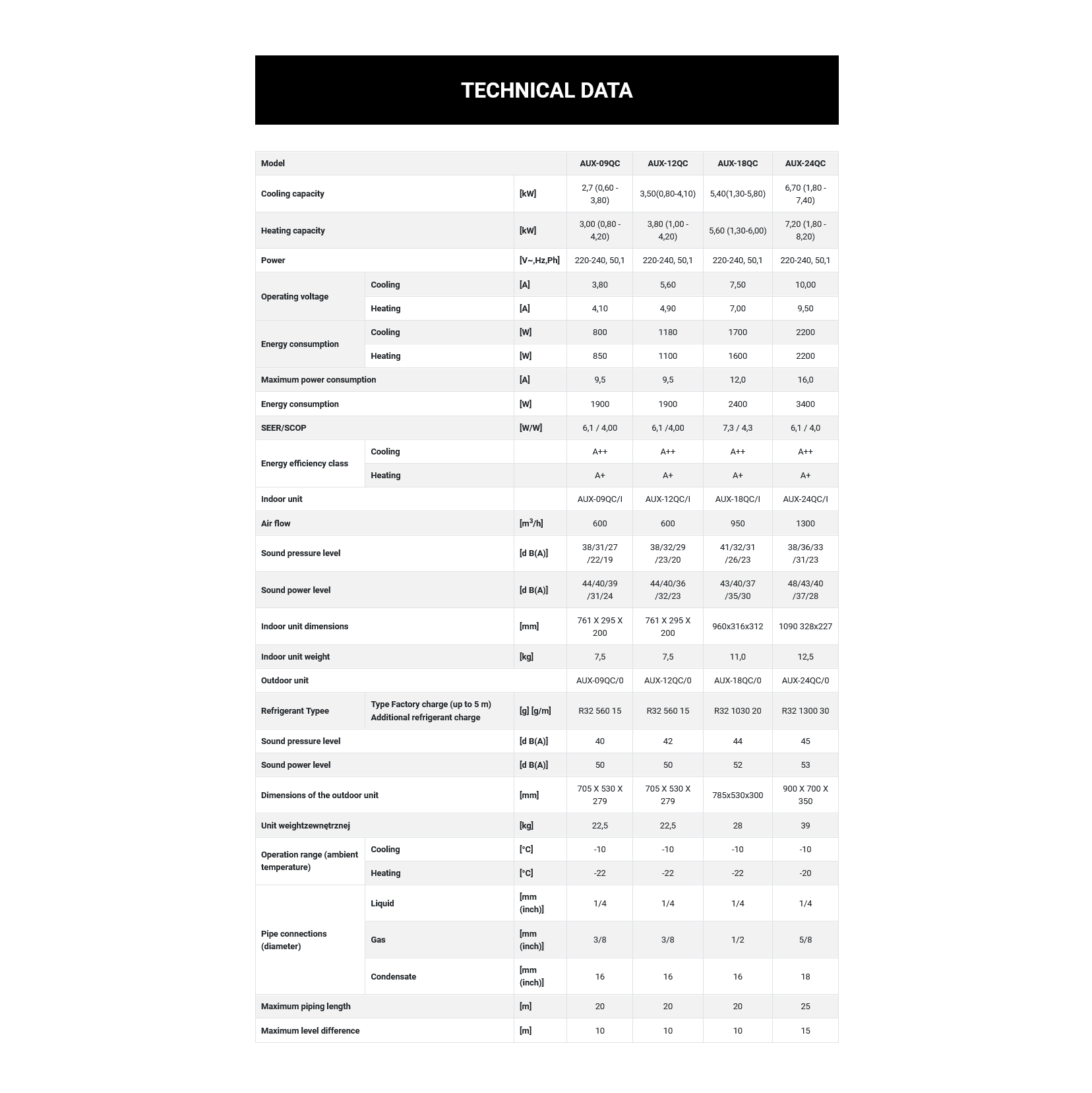 Milieugegevens: AUX 5.0 kW buitenunit